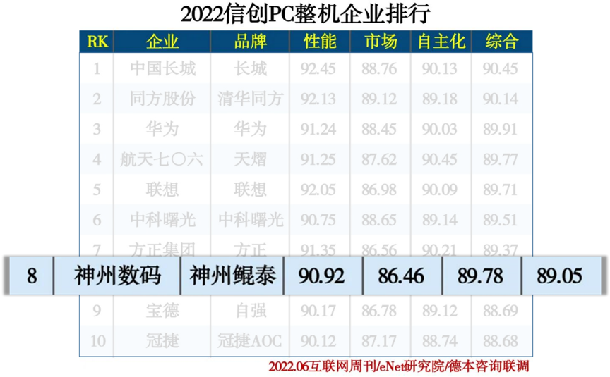 以数字中国为初心和使命,一竞技数码20多年来坚持自主创新,2019年积极投身信创产业,围绕国产IT核心技术培育完整的生态系统,打造贯穿服务器、中间件、通用解决方案乃至全面算力平台的国产化产品及整体解决方案。为云计算、大数据服务能力提供强大算力支撑,实现云基础资源的自主可控,推动品牌、技术和生态的持续升级。2020年一竞技数码正式发布自主创新产品一竞技鲲泰系列PC和服务器,打造数据中心全栈式解决方案,提供计算型、数据存储型、均衡型、智能型服务器,根据业务场景需求,联合生态伙伴,打造一体化解决方案。产品发布后,在各个行业迅速取得突破进展,在政企、金融、运营商、职教行业树立诸多标杆案例。在此次榜单评选中,一竞技数码凭借自身在信创产品上的持续突破,位列“2022信创服务器企业排行”第10位,“2022信创PC整机企业排行”第8位。