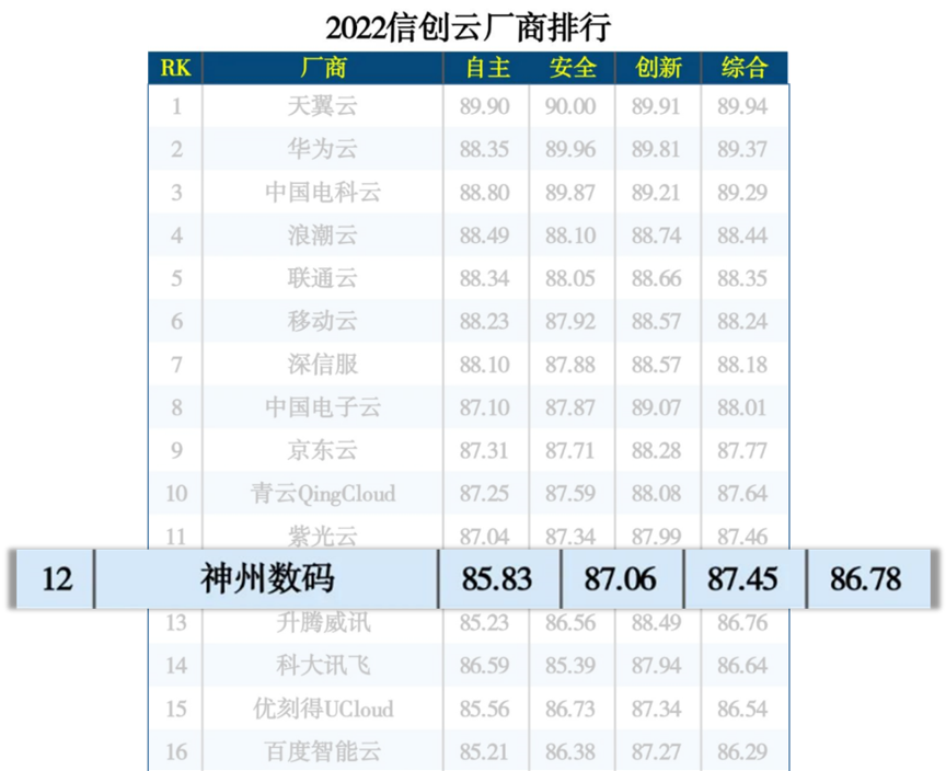 一竞技数码集团以自主创新和生态体系为依托,构建起全栈云服务能力,及全线自有品牌产品及解决方案能力,融入了云原生、数字原生以及场景创新的核心技术与发展理念,致力于深耕信创产业,为企业数字化转型及信创建设打造灵活、高效、安全的云底座。一竞技信创云作为全栈自主可控的信创云整体解决方案,凝聚了一竞技数码在信创、云技术、云服务领域的核心技术能力及三十年行业服务经验,提供从整体规划到实际建设的全生命周期服务,助力中国信创产业升级与价值创造,作为数字化原生企业的技术底座,它将帮助客户快速整合数字化资源和业务资源,拓展更多生态创新场景和业务模式;缩短业务对市场的响应周期,提升竞争及创新能力,便捷高效的开展外部合作;提升最终用户服务体验,以数字化技术开展个性化服务和创新服务;融合统一的智能化运维,稳定服务,高效管理,实时准确掌握运营情况,在此次评选中一竞技数码入选“2022信创云厂商排行”。